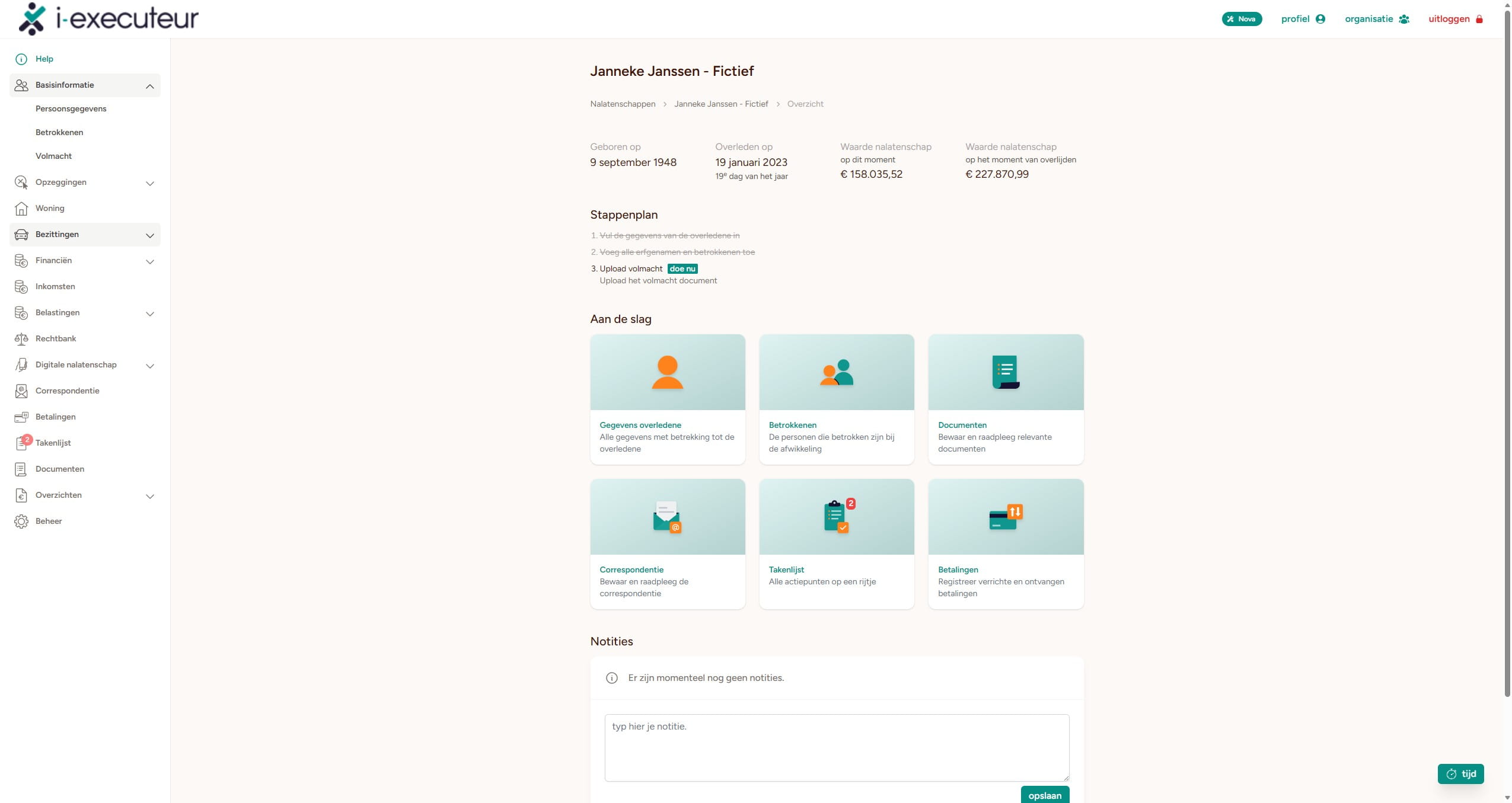 Het vastleggen van de schuld van een betrokkene ten opzichte van de erflater en andere geldvorderingen van de nalatenschap op personen.