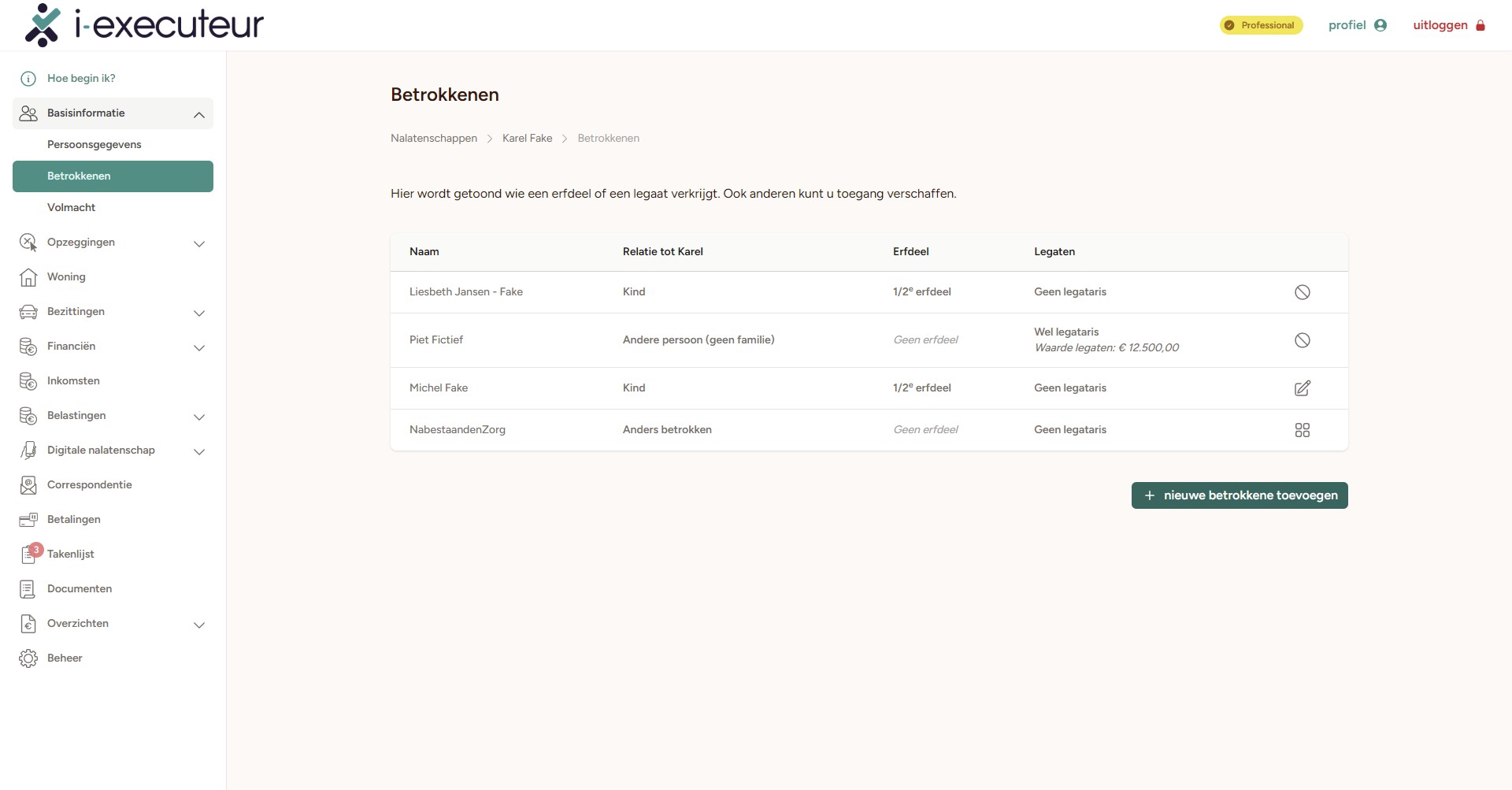 Een onterft kind als legitimaris toevoegen en registreren dat deze aanspraak op de legitieme portie maakt.
